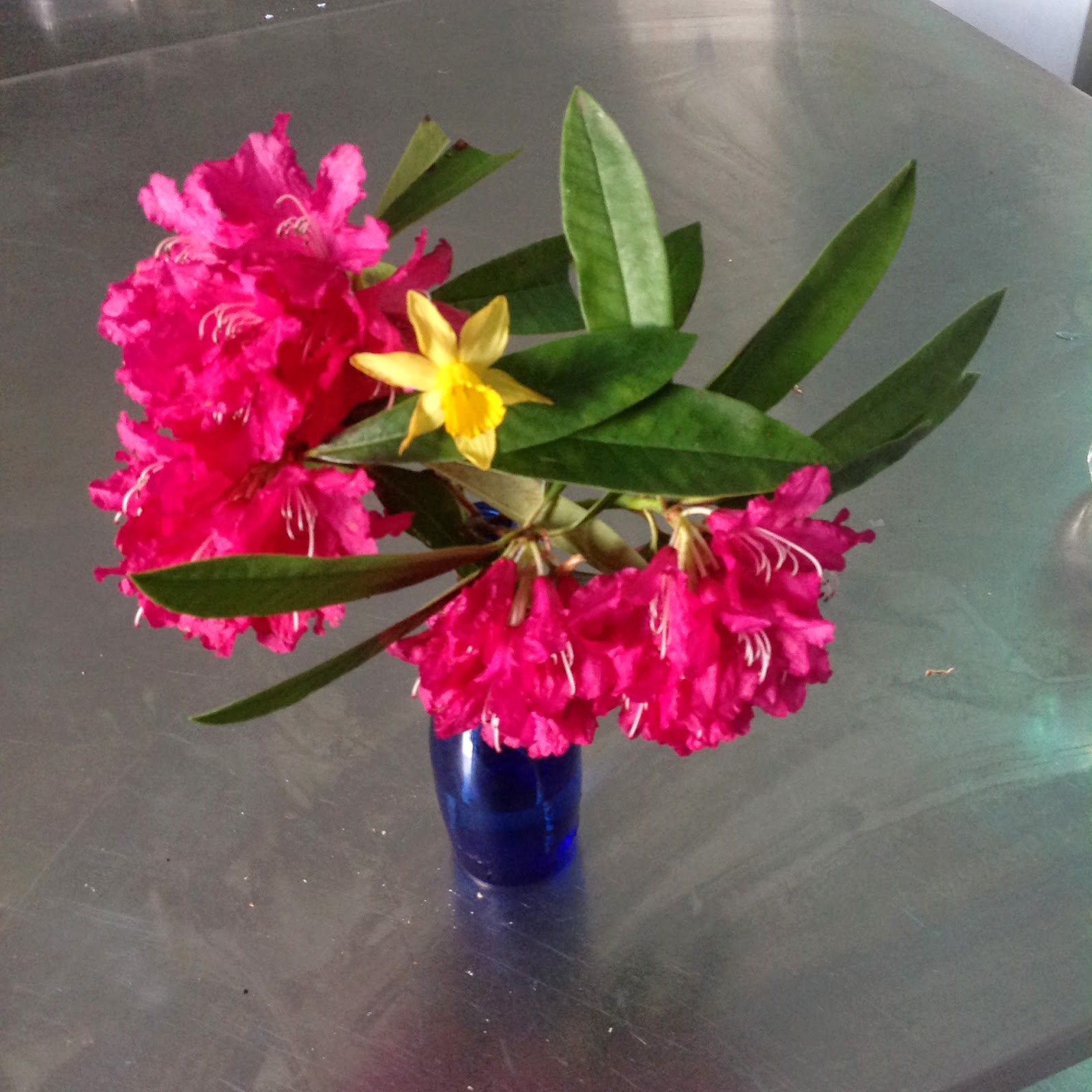 From this enormous Rhododendron (pronounced road-ee-den-dron by David) out back. |